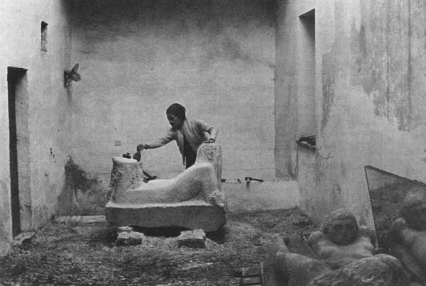 Anna Mahler In the courtyard of Casa Mahler, Anna chipped rhythmically away at massive stones, revealing striking and mysterious figures in undulating forms reminiscent of landscapes. Anna had begun her career as a painter tutored by Giorgio de Chirico in Rome. Encouraged by the artist Fritz Wotruba, however, she soon discovered her métier sculpting stone. She also worked in clay and used her kiln for portrait busts and smaller figures. Ernst Gombrich wrote how the value of her art, “...is not determined by superficial characteristics but by the ability to reach and touch our innermost feelings”. She first arrived in Spoleto in 1968 inspired to buy a home in Italy by a trip she made to Cortona a year earlier with her daughter Marina, who had suggested Italy rather than the English countryside as a place to live and work. Today, the house has been transformed from a working studio into an elegant villa and a number of her artworks stand close to the places where they were made. A vaulted room holds the Anna Mahler Archive, including correspondence and photography relating to her own and her families lives, as well as her tools and workbenches.